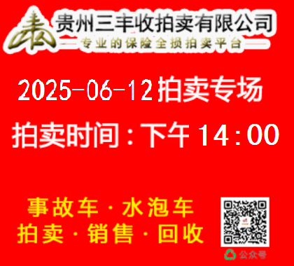 貴州三豐收拍賣有限公司網絡拍賣于2025年06月11日下午14點00準時開拍 請需要拍賣車輛的會員 通過二維碼繳納拍賣保證金或者致電我司繳納保證金 0851-86711666 18275321810 13378515056 18268322089 人工審核